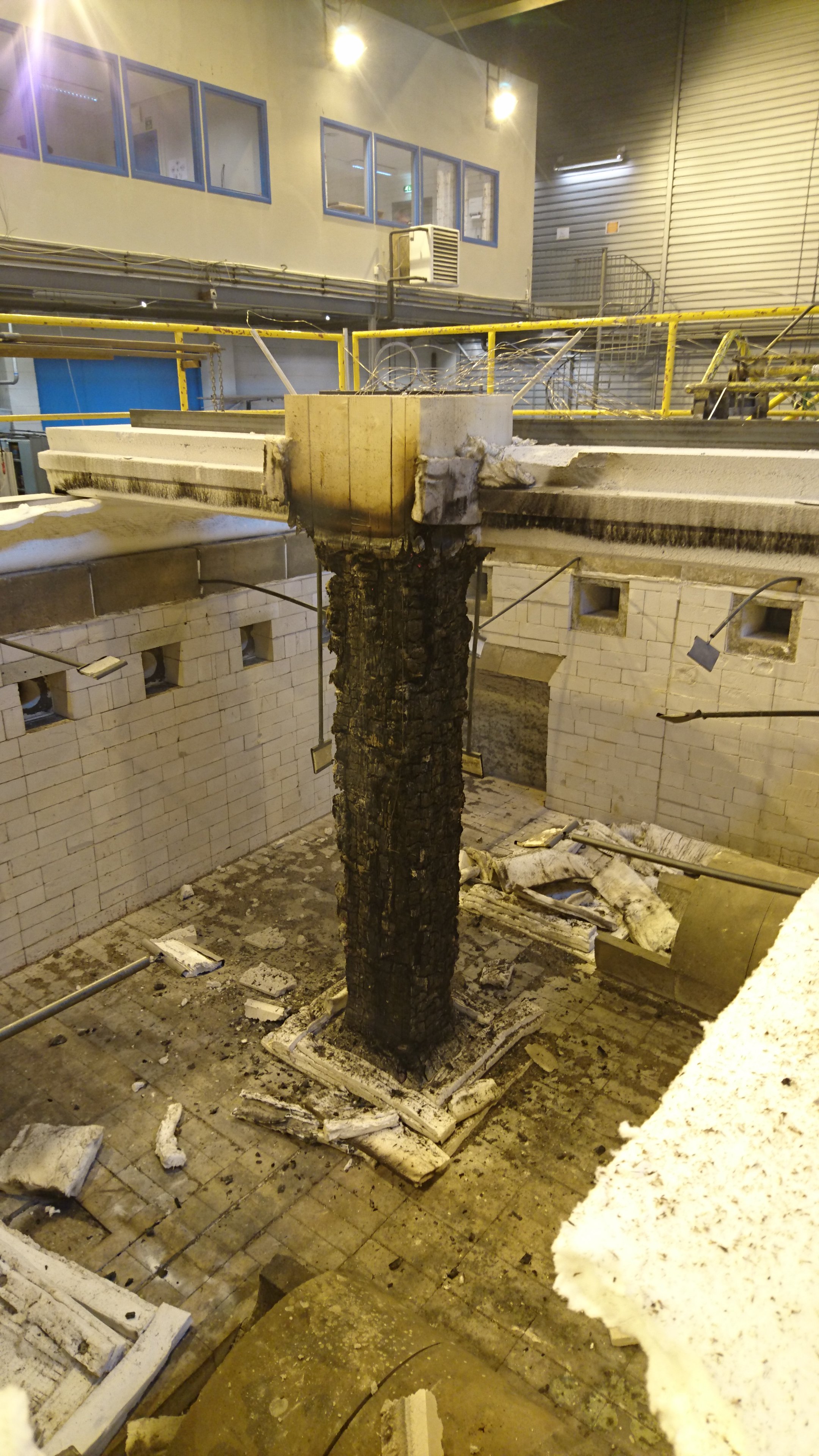 Three large dimension glulam columns were equipped with temperature sensors and examined during a standard ISO fire for 90 minutes and subsequent cooling off period.